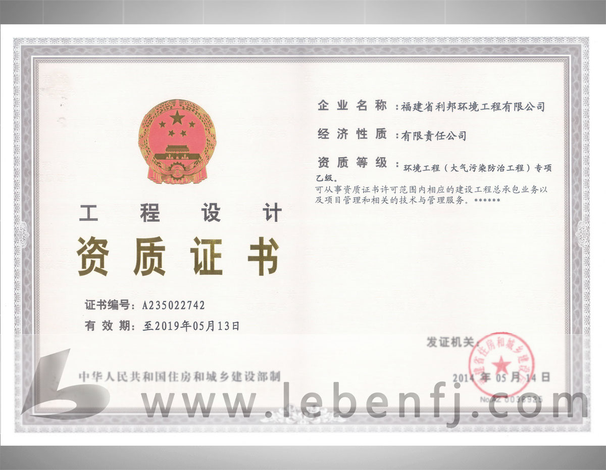 環(huán)境工程設(shè)計(jì)專項(xiàng)資質(zhì)(乙級(jí))