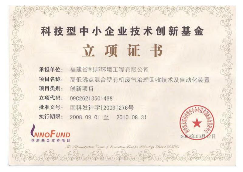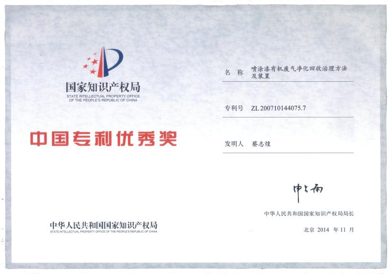 福建省科技型企業(yè)、福建省創(chuàng)新性企業(yè)、福建省首批科技小巨人、福建省“專精特新”專業(yè)化企業(yè),擁有企業(yè)研發(fā)中心、福建省有機(jī)廢氣凈化設(shè)備工程技術(shù)研發(fā)中心;公司產(chǎn)品獲得科技部、環(huán)保部、商務(wù)部、國家質(zhì)量監(jiān)督總局頒發(fā)的“國家重點(diǎn)新產(chǎn)品”證書,“中低濃度揮發(fā)性有機(jī)物回收凈化裝備”被列入《國家鼓勵(lì)發(fā)展的重大環(huán)保技術(shù)裝備目錄(2017年版)》;公司核心發(fā)明專利分別獲得了中國專利獎(jiǎng)優(yōu)秀獎(jiǎng)、福建省專利獎(jiǎng)二等獎(jiǎng)等專利獎(jiǎng)項(xiàng),其中兩個(gè)核心技術(shù)分別獲得福建省技術(shù)發(fā)明獎(jiǎng)二等獎(jiǎng)、福建省科學(xué)技術(shù)進(jìn)步獎(jiǎng)二等獎(jiǎng);公司